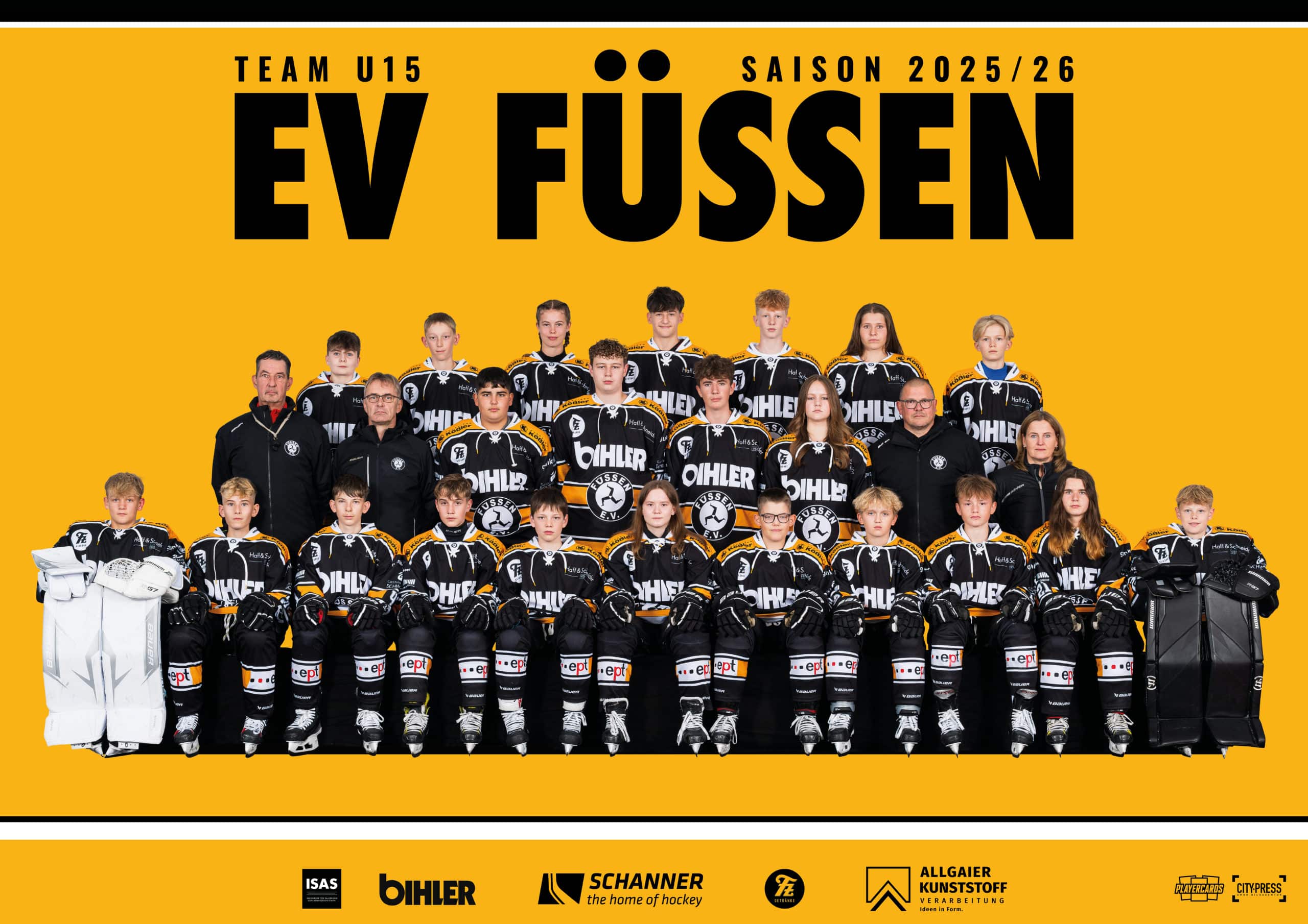 Das U15-Schüler-Team des EV Füssen tritt auch in dieser Saison wieder in der Bayernliga an, der höchsten Spielklasse dieser Altersgruppe. Hier stellen sich unsere jungen Talente den Herausforderungen der besten Teams Bayerns. Als integraler Bestandteil unseres Vereins, wo Eishockey zu Hause ist, steht unser Schüler-Team für die konsequente Nachwuchsarbeit und die Weitergabe der Traditionen des EV Füssen. Wir sind stolz auf unsere Spieler und ihre Leidenschaft für den Sport, die sie in jeder Partie aufs Neue zeigen.