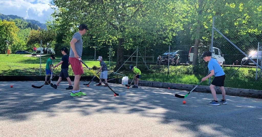 Zweimal pro Woche stellt der für diese Altersklassen Verantwortliche EVF-Funktionär Andreas Jorde mitsamt seiner Coaching-Crew eine Trainingsstunde auf die Beine, die nicht nur Eishockey, sondern auch viel „Spiel und Spaß“ zu bieten hat. Wem das Hockey-Zocken nach ein paar Minuten „zu blöd“ ist, der kann sich schließlich auch an weiteren koordinativen Lern-Stationen austoben, oder einfach mal Jonglierbälle durch die Luft fliegen lassen. Ganz klar: Für jeden ist hier etwas dabei. Und Corona-sicher ist die ganze Angelegenheit noch dazu, „da achten wir sehr darauf“ wie Andreas Jorde berichtet. Auch wenn der personelle Aufwand dabei recht groß ist: „Aber das gehen wir natürlich sehr gerne ein.“ Coole Coaches, viel Spielspaß und jede Menge Füssener Herzblut – auch die kleinsten EVF-Kufen-Cracks von morgen können sich auf viel „Sommer-Fun am Kobelhang“ freuen.