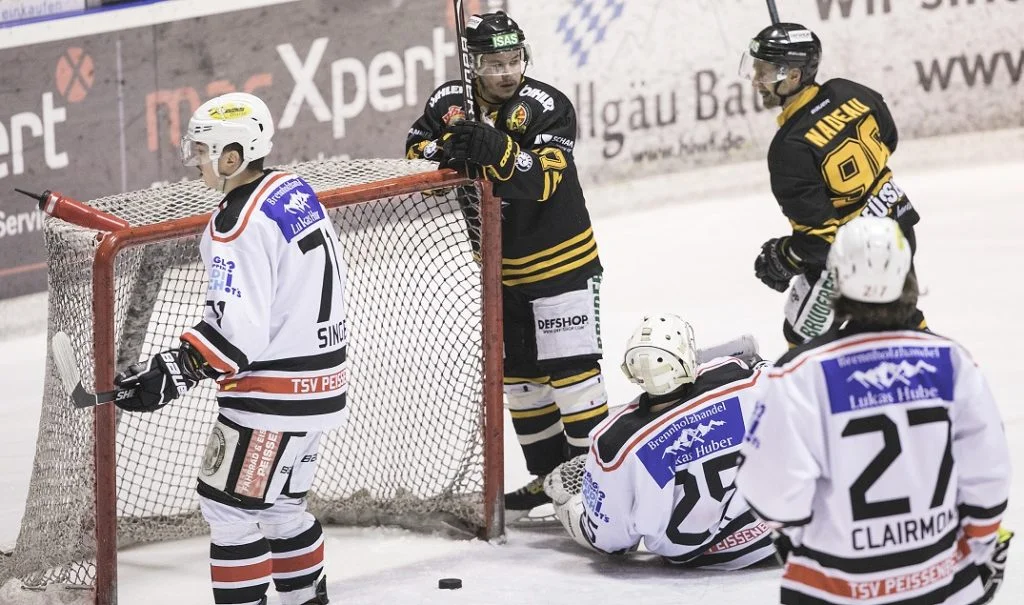 Tore: 1:0 (7.) Krötz (Newhook, Vaitl/6-5), 2:0 (18.) Payeur (Besl, Wood), 3:0 (25.) Newhook (Nadeau, Dropmann/6-5), 4:0 (30.) Besl (Payeur, Klein), 5:0 (34.) Meier (Nadeau), 6:0 (38.) Besl (Payeur, Wiedemann), 7:0 (50.) Payeur (Besl, Wiedemann), 8:0 (51.) Klein (Böck, Newhook), 8:1 (52.) Malzatzki (Barth Fl., Andrä). Strafminuten Füssen 6, Peißenberg 4. Zuschauer 878.