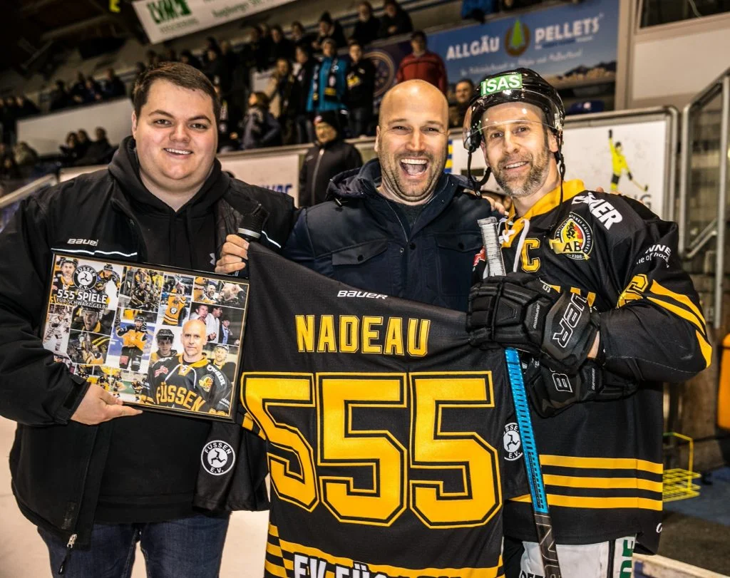 Ehrung vor dem Spiel: EVF-Kapitän Eric Nadeau bestritt jüngst sein 555. Spiel für den EV Füssen, und erhielt zu diesem besonderen Anlass ein spezielles Trikot überreicht. Vielen Dank, Eric Nadeau. Danach gab es Einbahnstraßen-Eishockey zu sehen, Peißenberg war mit dem Spieltempo zumindest in den ersten beiden Abschnitten völlig überfordert. Nach zehn Sekunden erfolgte die erste Torchance des Heimteams, in der siebten Minute war es Verteidiger Christian Krötz, der bei angezeigter Strafe eine schöne Kombination mit seinem ersten Saisontor zum 1:0 abschloss. Nicht nur deswegen war der Treffer ein besonderer. Die Vorlage von Ron Newhook war dessen 1000. Assists im Seniorenbereich. Gratulation an Ron für diese herausragende Leistung. Danach gab es eine Strafzeit wegen Spielverzögerung gegen den EVF, und hier hätte der TSV in Überzahl beinahe ausgeglichen, die Scheibe landete an der Latte. Kurios: Es sollte eine von nur zwei Torchancen der Gäste in den ersten vierzig Minuten sein. Marius Klein traf danach auf Füssener Seite das Gestänge, ehe Samuel Payeur den längst fälligen zweiten Treffer erzielte.