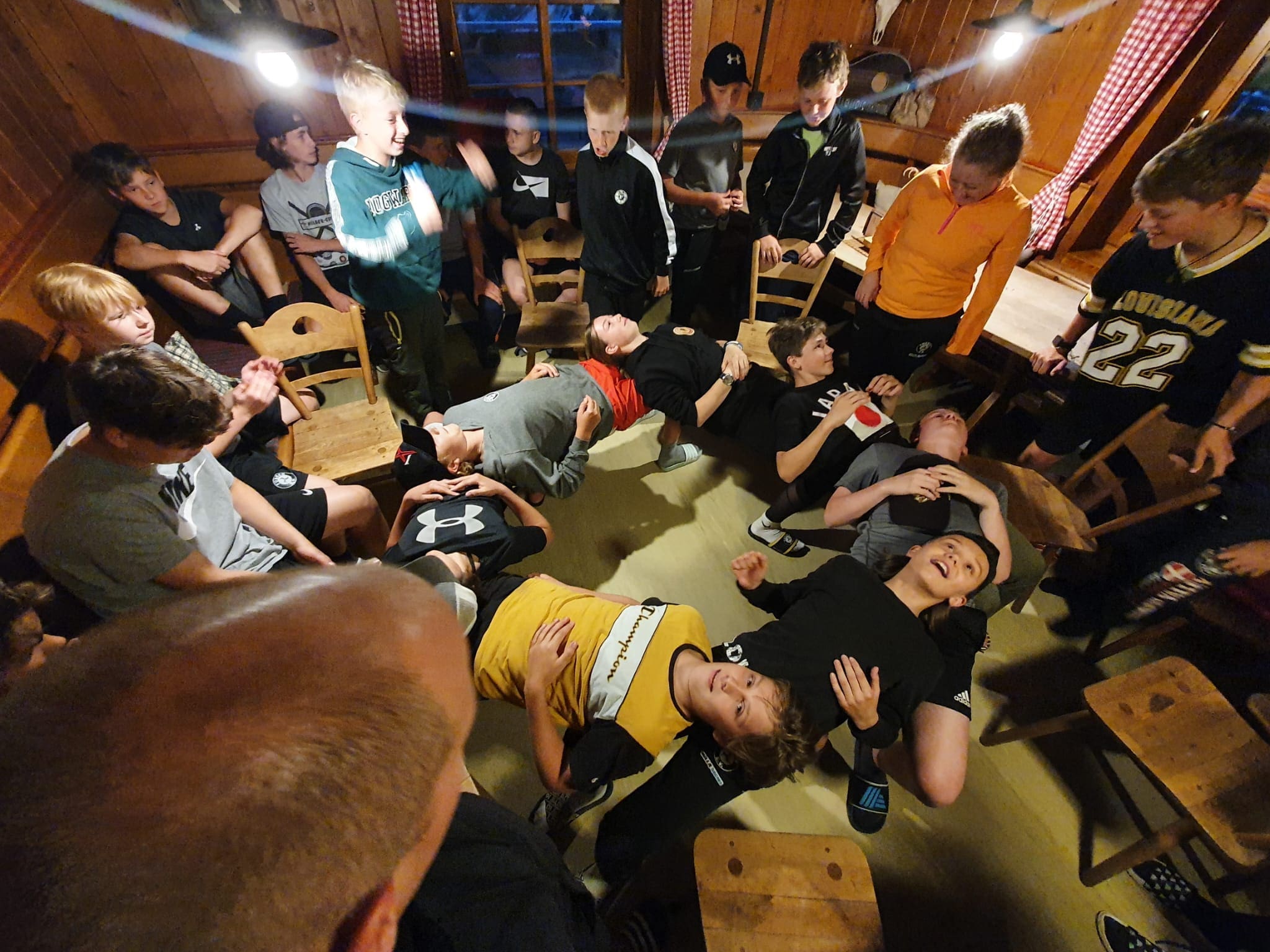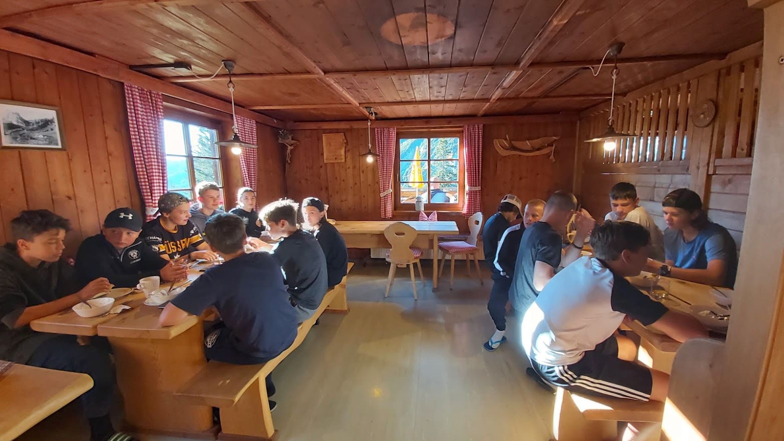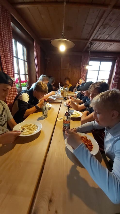 Einmalig lecker sollte es dann auch beim gemeinsamen Essen zugehen, wo kalte Getränken und Nudeln die Kinderaugen hell aufleuchten ließen. Gestärkt von dieser lässigen Brotzeit war es auch ein Leichtes, sich bei Badminton, „Two-Touch“ und Kartenspielen die viele Freizeit auf dem Berg zu versüßen. Das Herumtoben und Spaß-Haben sollte auch bei den anschließenden teambildenden Maßnahmen“ kein Ende finden: Als Mannschaft vereint galt es verschiedene Aufgaben zu meistern, wobei die Jungs und Mädels eine mehr als zufriedenstellende Figur abgaben. Mit der Erkenntnis, dass der Zusammenhalt im eigenen U15-Team mehr als nur gegeben ist, sollte schlussendlich zu Bette gegangen werden. Die „Hüttenruhe“ gefiel zwar nicht jedem jungen EVF-Star auf Anhieb (wer mag´s ihnen auch übel nehmen) – unter Nachdruck der BetreuerInnen wurde dann aber doch noch zeitlich genächtigt. So ein Wandertrip macht eben müde …