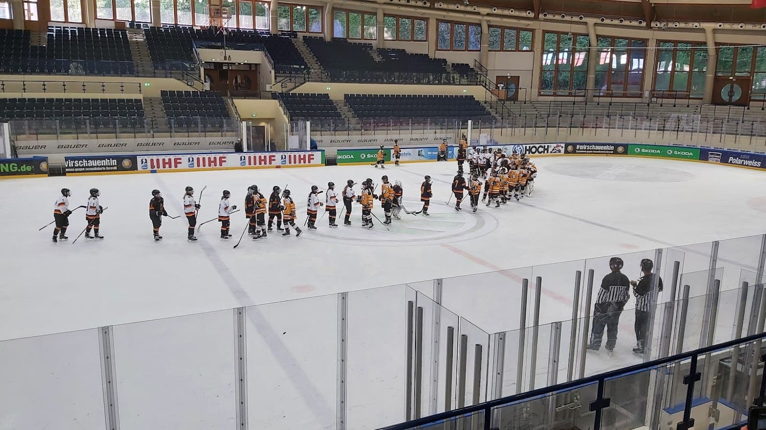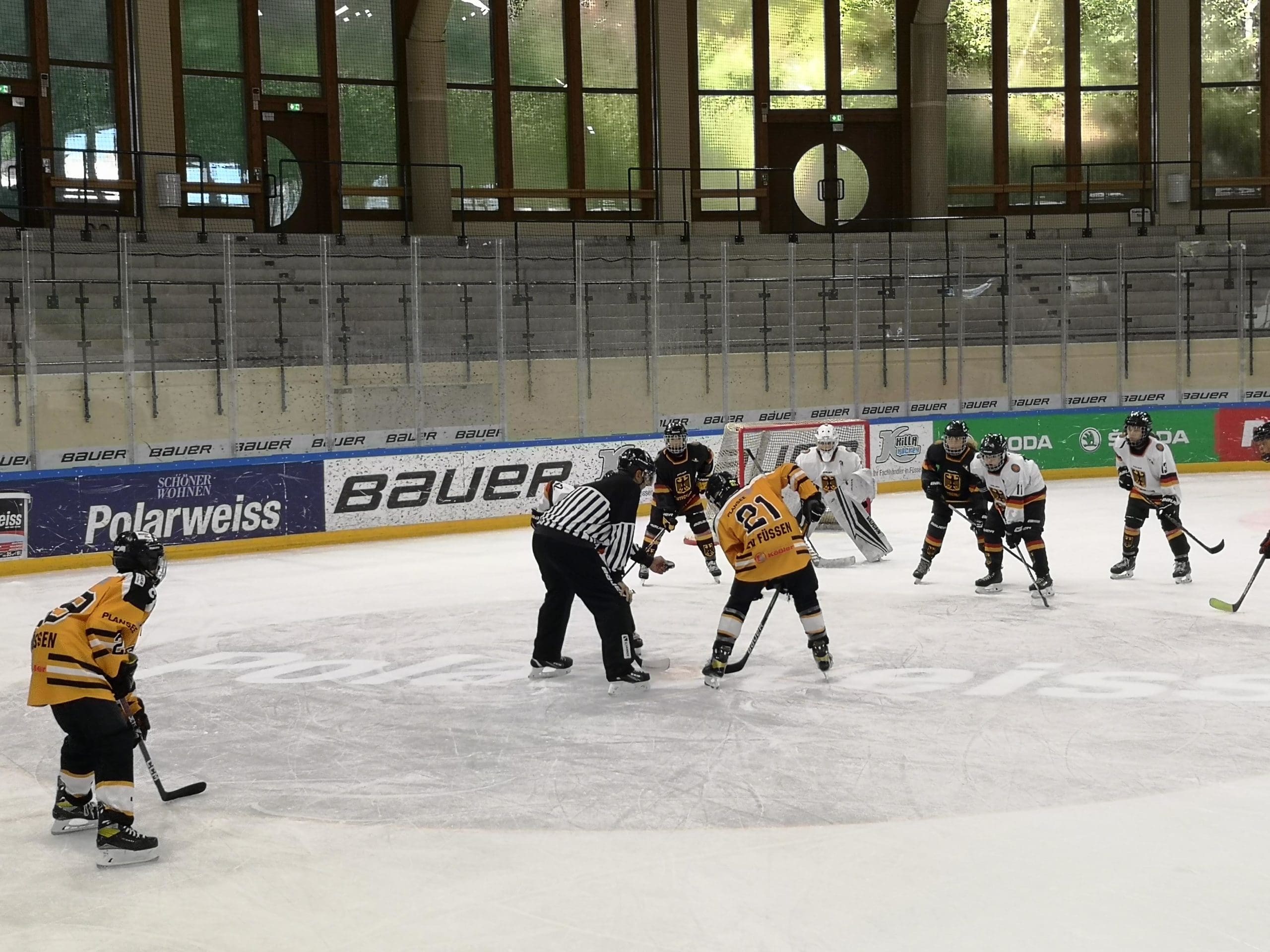 Denn was wäre ein höchstmotiviertes, top-eingestelltes U15-Team ohne eine kleine spielerische Einheit auf dem Eis des Füssener Bundesstützpunkt für Eishockey? Na? Ja nichts natürlich. Umso klarer, dass dieses Wochenende der ganz besonderen Art mit einem Testspiel gegen die deutsche U16-Damennationalmannschaft sein Ende finden sollte. Das Endergebnis (2:6 aus EVF-Sicht) war da absolut zweitrangig. Schließlich hatten die Kiddies beim Messen mit den stark aufspielenden Nationalmannschaftsmädels jede Menge Spaß. Freude, wie ganz grundsätzlich an diesem ganz speziellen Teamevent-Wochenende. „Dringender Wiederholungsbedarf“, war da aus einigen Ecken des Füssener Eisstadions zu hören. „Bitte nochmal!“