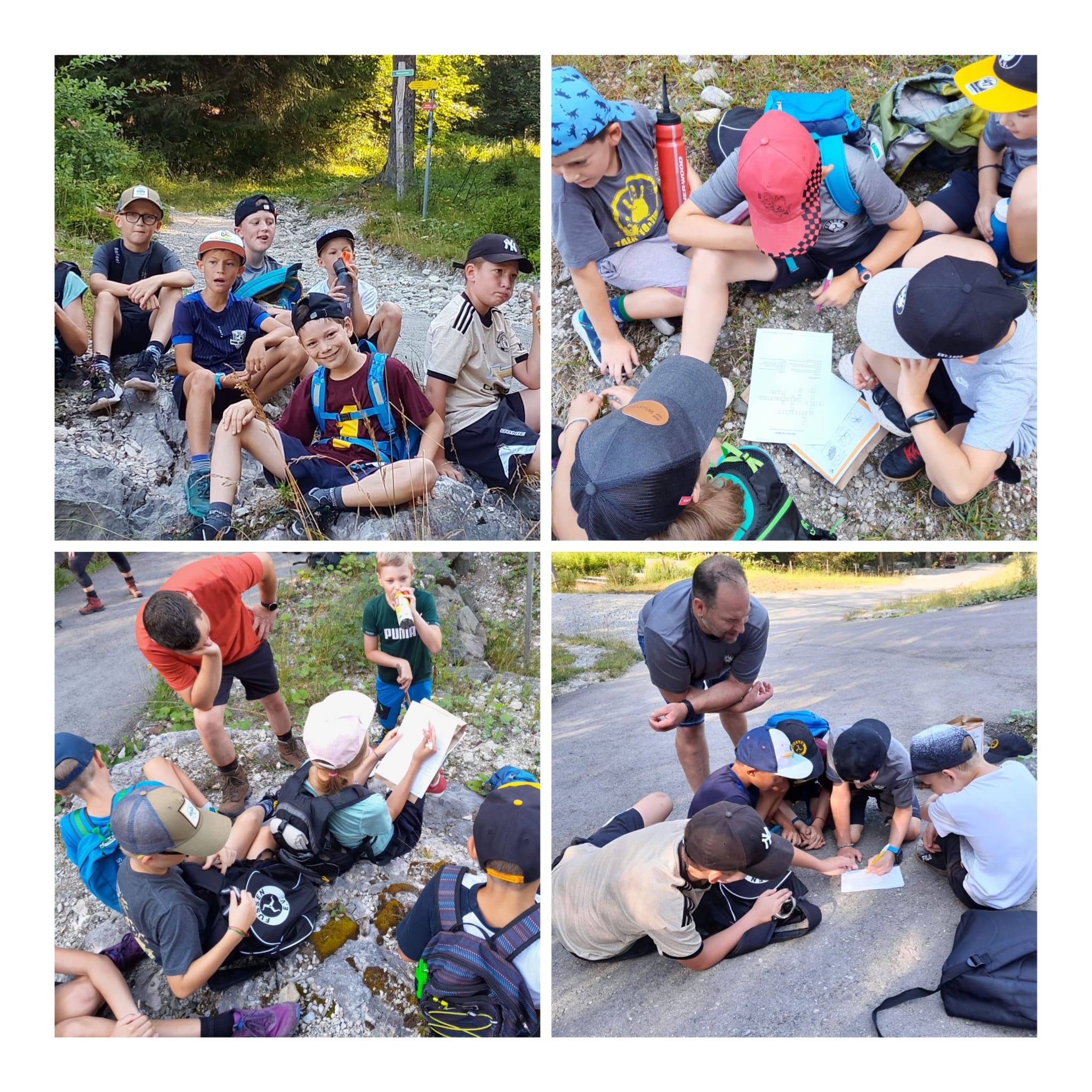 Die Kinder wurden in drei Mannschaften eingeteilt und jeder Mannschaft wurden zwei Betreuer oder Trainer zugeordnet und schon ging es los. Die erste Aufgabe war über die gesamte Wanderung Dinge oder Tiere des Waldes zu entdecken und zu sammeln. Die Pausen, die bei der Wärme regelmäßig notwendig waren, wurden genutzt um zu trinken und um weitere Teamaufgaben zum Thema Wald und Natur zu erfüllen.